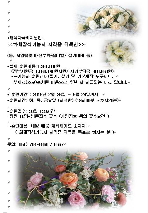 * 화훼장식기능사 자격증반 : 2019년 2월 26일 개강 (저녁반)