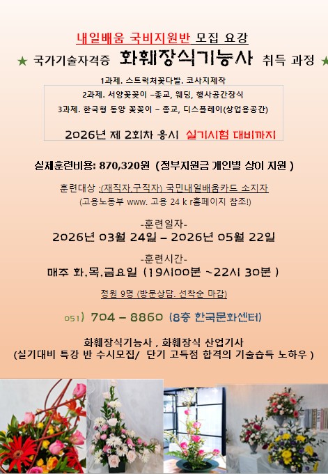 화훼장식기능사(실기대비) 자격증 취득 국비지원 개강안내