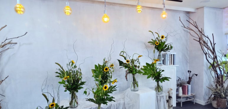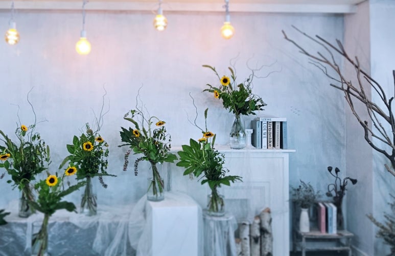꽃도 아름답지만 소재를 이용한 스텐딩꽃다발을 제작해보고