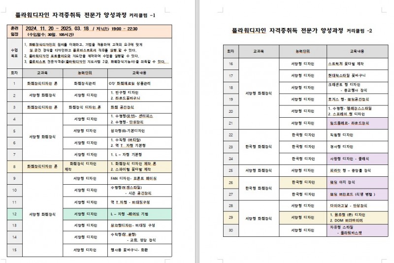 #부산 플로리스트자격증반 - 플라워디자인 지도사범 2급/ 화훼장식기능사