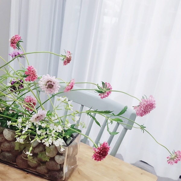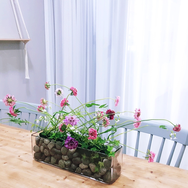 교차의 기법은 단일소재로도 풍부한 움직임의 효과를 표현할수 있어 테이블센터피스 용도로 제작해보도록 하였습니다