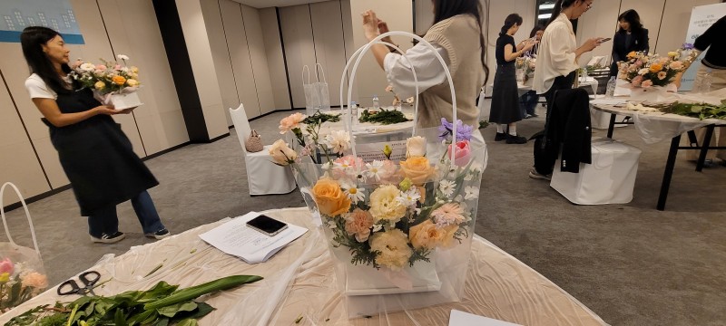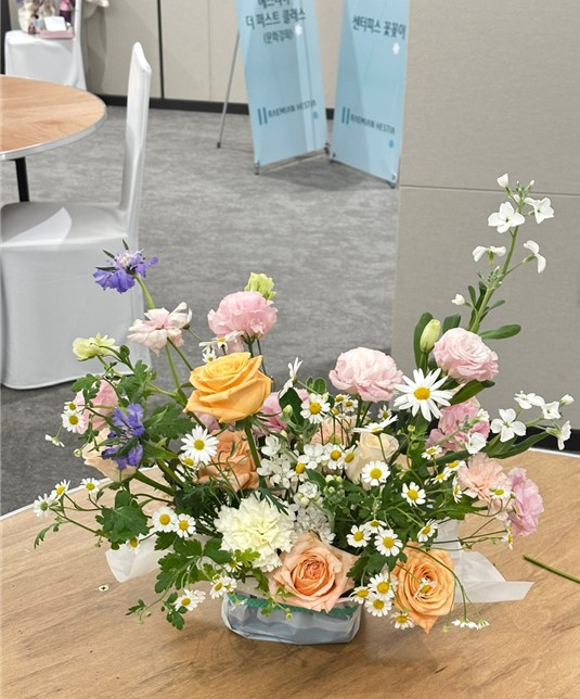 마지막 수업을 끝내고 여분으로 남은 꽃은 화기없이 와핑처리해서 꽂아드리고 왔습니다 ^ ^