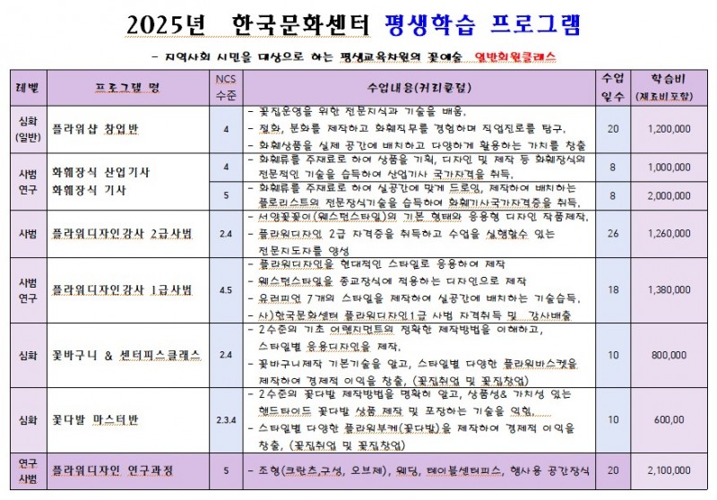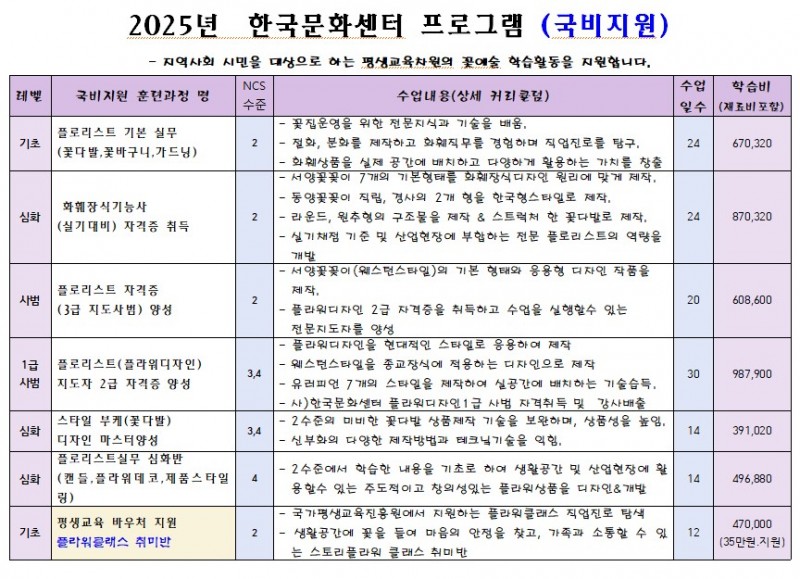 25년 하반기 (10월 ~ 12월 ) 플라워국비지원 프로그램 개강안내 합니다. > 작품갤러리