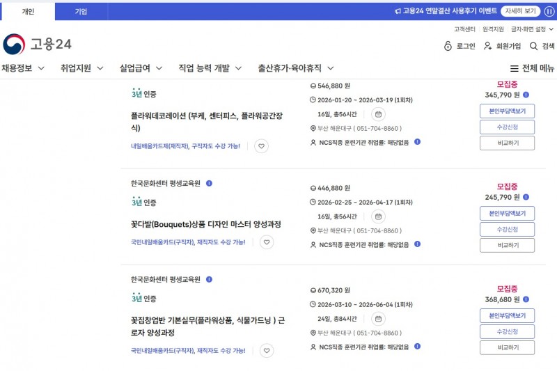 부산 한국문화센터 평생교육 직업능력개발 플로리스트 자격…