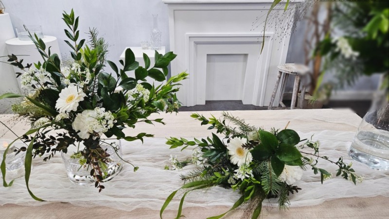 플로리스트자격증반- 비대칭형 꽃장식 크레센트형과 호거스…